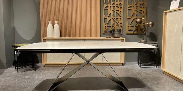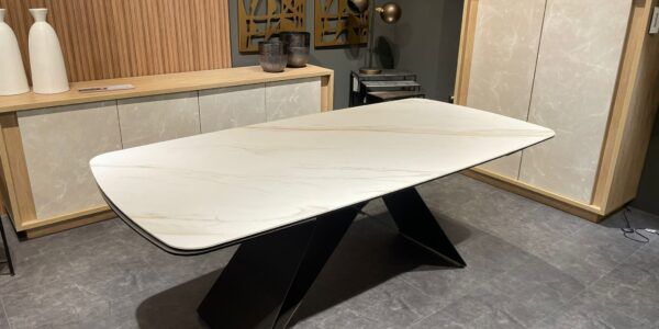 Clarissa è un tavolo funzionale ed elegante allo stesso tempo; definito da una struttura geometricamente composta e reso unico da un piano in effetto marmo bianco, questo tavolo si distingue per il suo progetto studiato in ogni particolare, renderà personale lo stile della vostra casa.