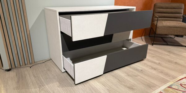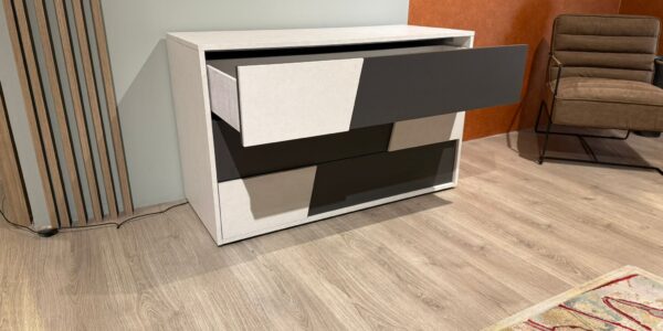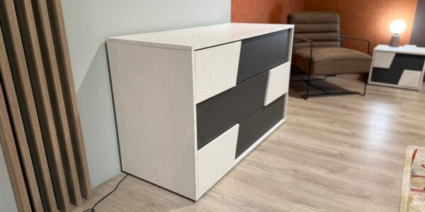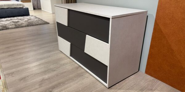 Telmo è un gruppo letto dal design moderno ed essenziale, composto da un comò a tre cassetti e due comodini coordinati. Le linee pulite e i dettagli sui frontali donano movimento e personalità all’ambiente notte, rendendo ogni spazio elegante e funzionale.