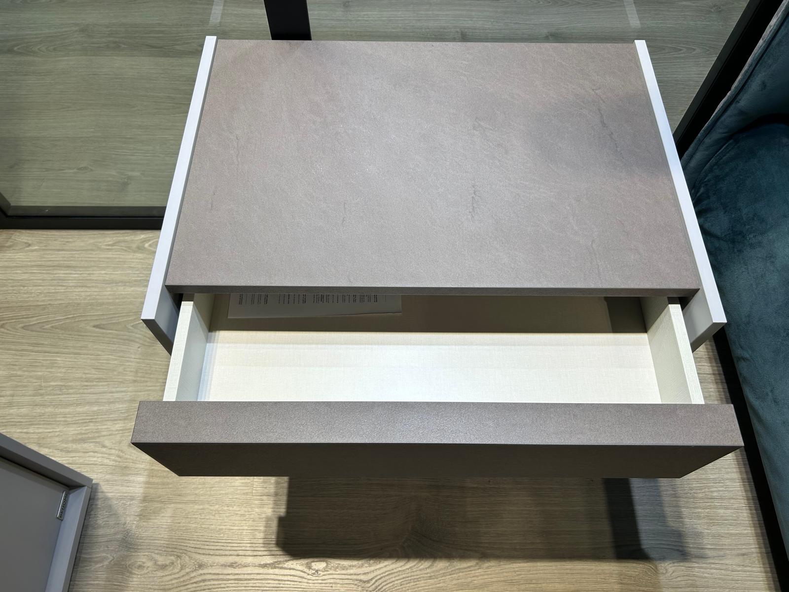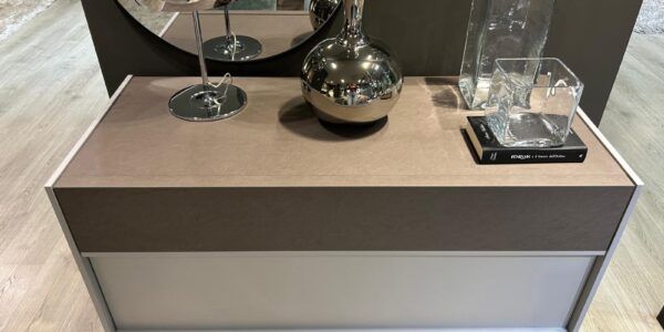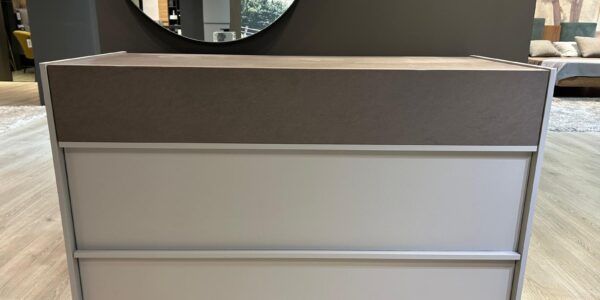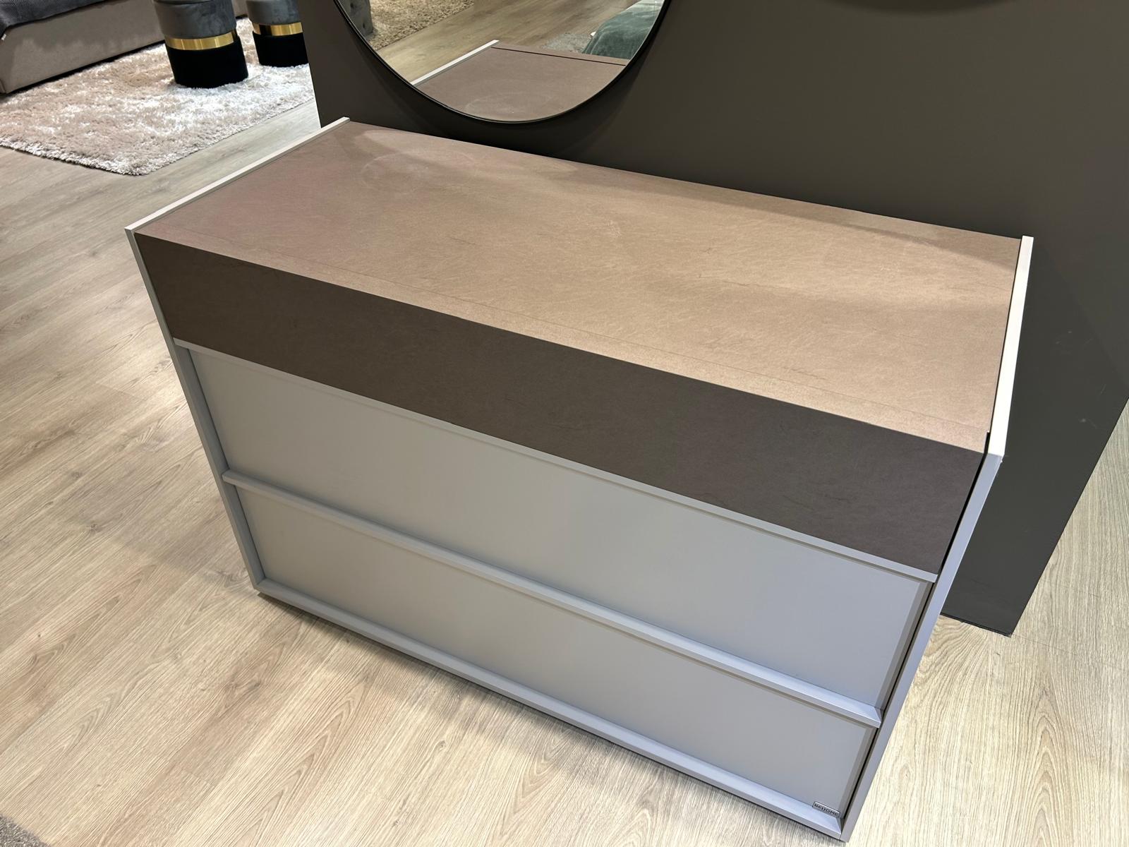 – Grigio seta con solo 1 cassetto e top spatolato bronzo.