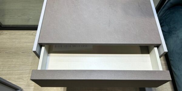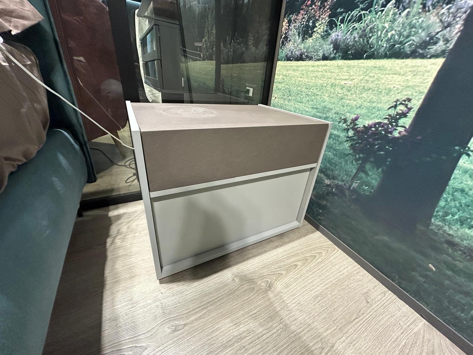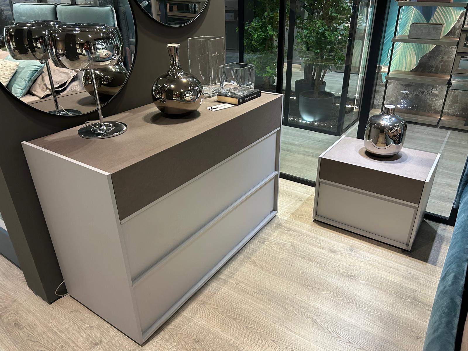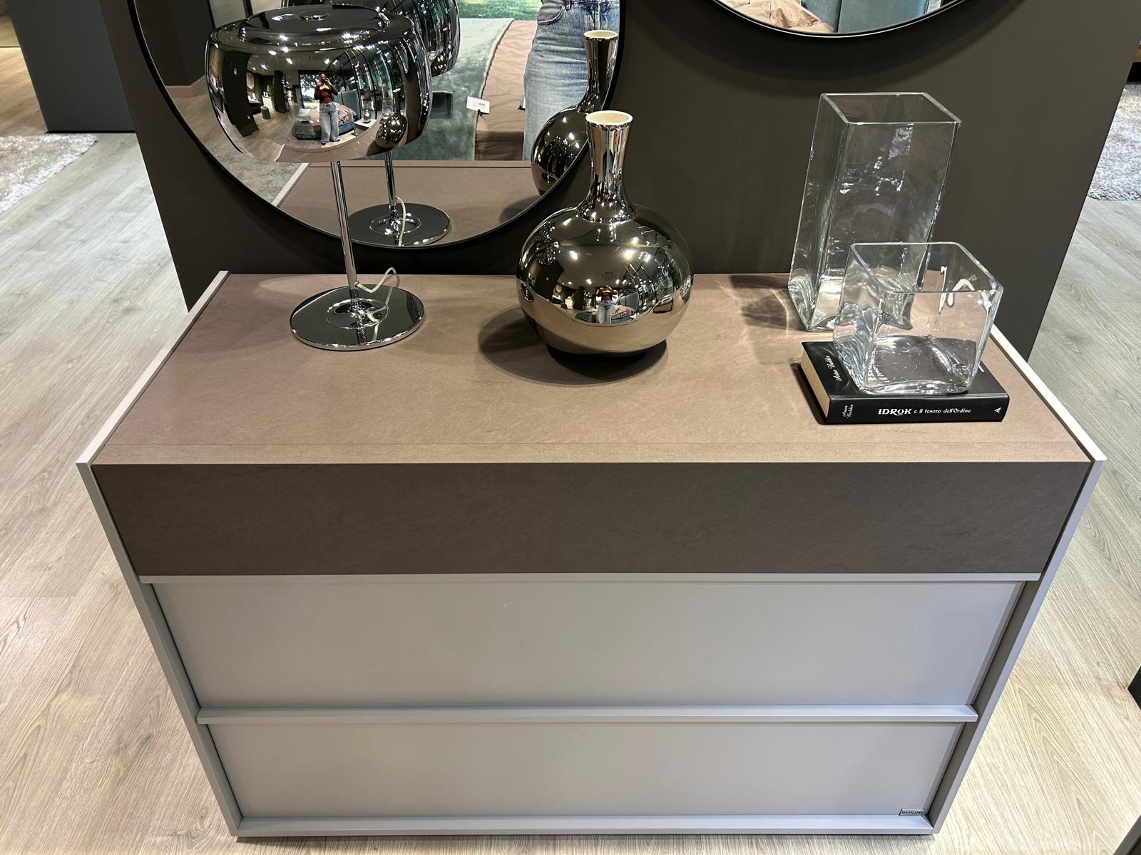 – Grigio seta con solo 1 cassetto e top spatolato bronzo.
