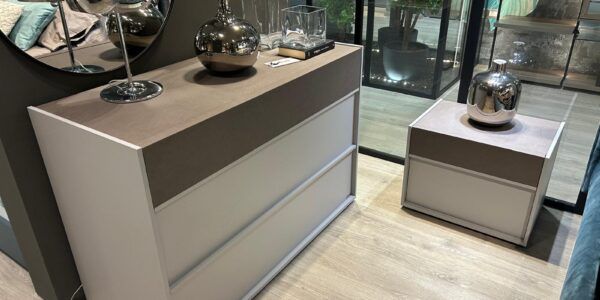 Trevor è un gruppo letto dal design moderno ed essenziale, composto da un comò a tre cassetti e due comodini coordinati. Le linee pulite e i dettagli sui frontali donano movimento e personalità all’ambiente notte, rendendo ogni spazio elegante e funzionale.