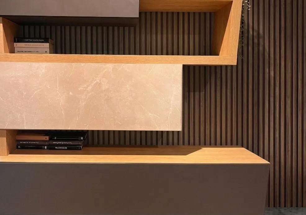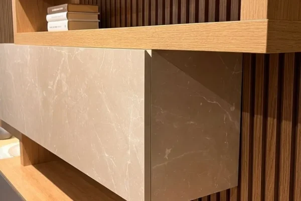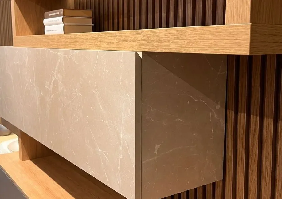 Composta da un insieme di elementi compositivi che avvolge e seduce al primo sguardo, è un mix di essenze e finiture dalle tonalità calde e sofisticate per una zona giorno dove l’eleganza è protagonista.