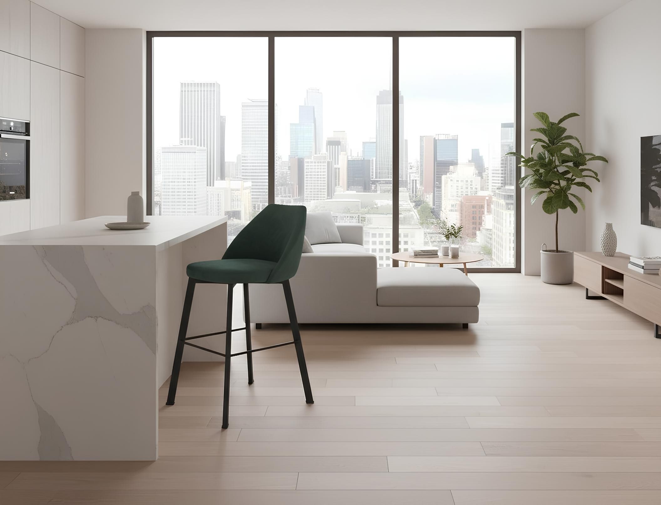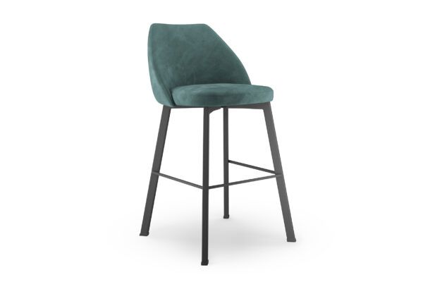 Già dal suo aspetto lo sgabello Fosca trasmette una sensazione di sofficità e comfort che viene confermata pienamente fin dal primo utilizzo. Le gambe sono in metallo verniciato e ben si adattano al tessuto in microfibra che riveste la seduta e lo schienale.