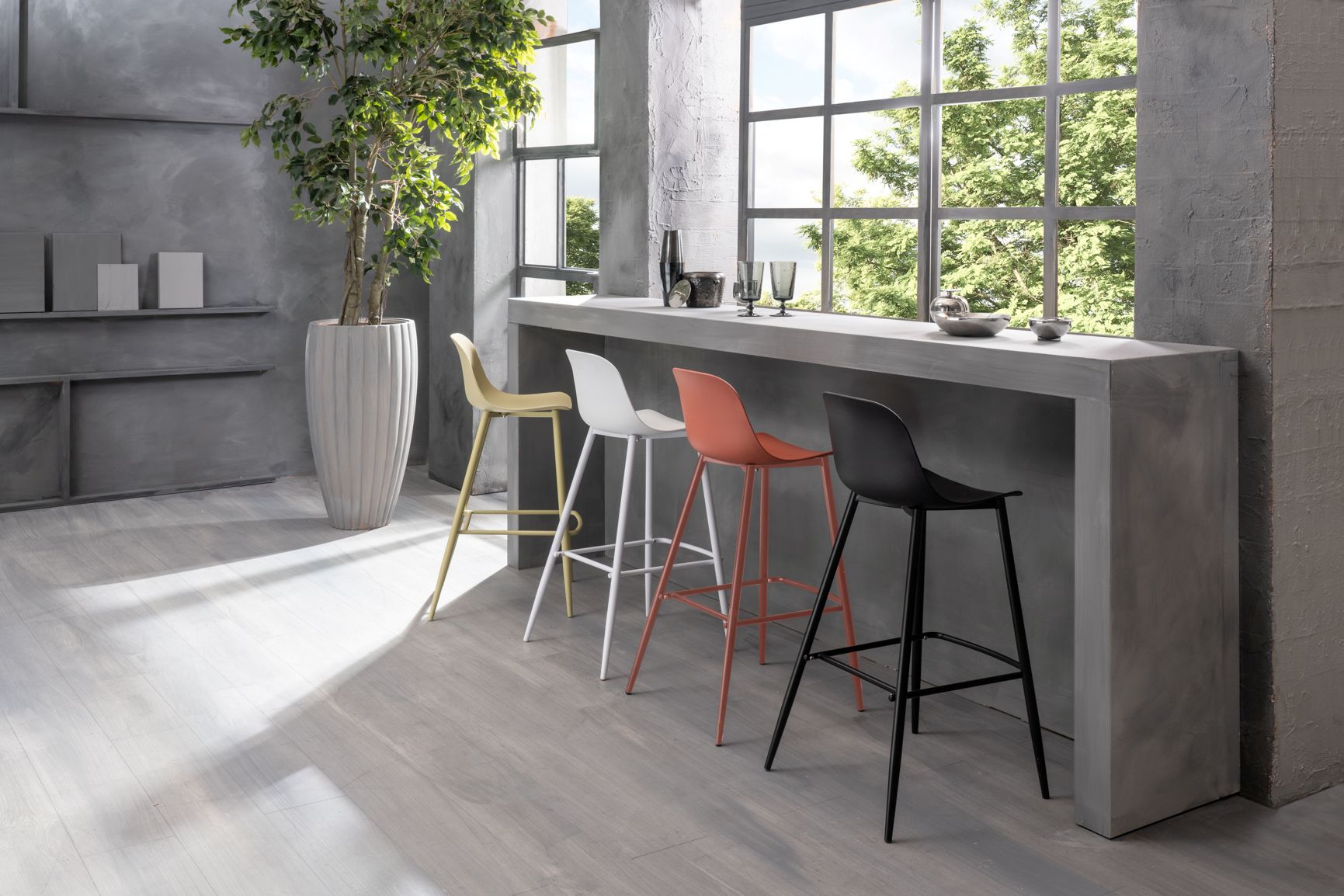Lo sgabello Freddy ha un design decisamente moderno che si sviluppa attraverso una seduta piatta e liscia e uno schienale avvolgente. Le linee arrotondate, sia delle seduta che dello schienale, conferiscono caratteristiche di robustezza e leggerezza allo stesso tempo.