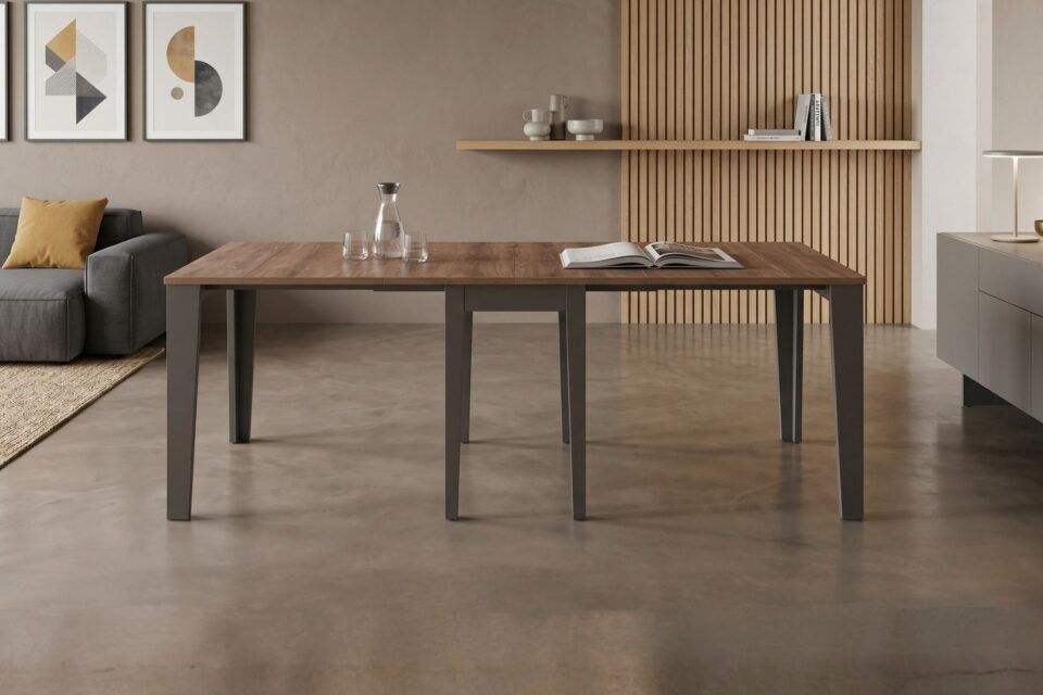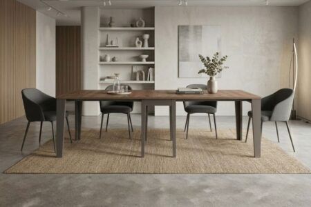 Grazie al sistema di apertura, il tavolo si estende facilmente, adattandosi a diverse esigenze di spazio, da soluzione compatta a comodo tavolo da pranzo per più ospiti. La struttura lineare e il design pulito lo rendono ideale per cucina, soggiorno o zona living.