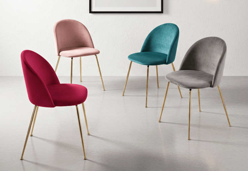 La sedia Vicenza è una sedia elegante in velluto dal design raffinato, ideale per valorizzare sala da pranzo e soggiorno con un tocco sofisticato.