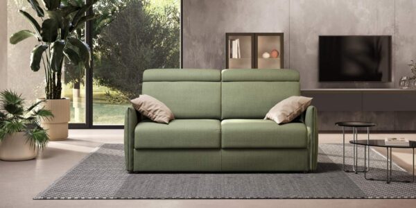 Comodo e pratico, Fever ha un sistema di apertura a ribalta che si apre senza togliere i cuscini; al suo interno contiene due vani vuoti, utili per riporre i guanciali oppure le coperte, ed è dotato di un comodissimo materasso H. 17 cm accogliente come quello di un vero letto.